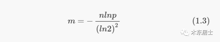 在实际应用中,更常见的需求是,已知集合大小n,并设定好误判率p,需要计算出该给 BF 分配多大内存合适,也就是要确认m的大小,可使用如下公式解决问题: