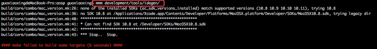 $ make idegen && development/tools/idegen/idegen.sh在运行这个命令的时候,可能会报错。