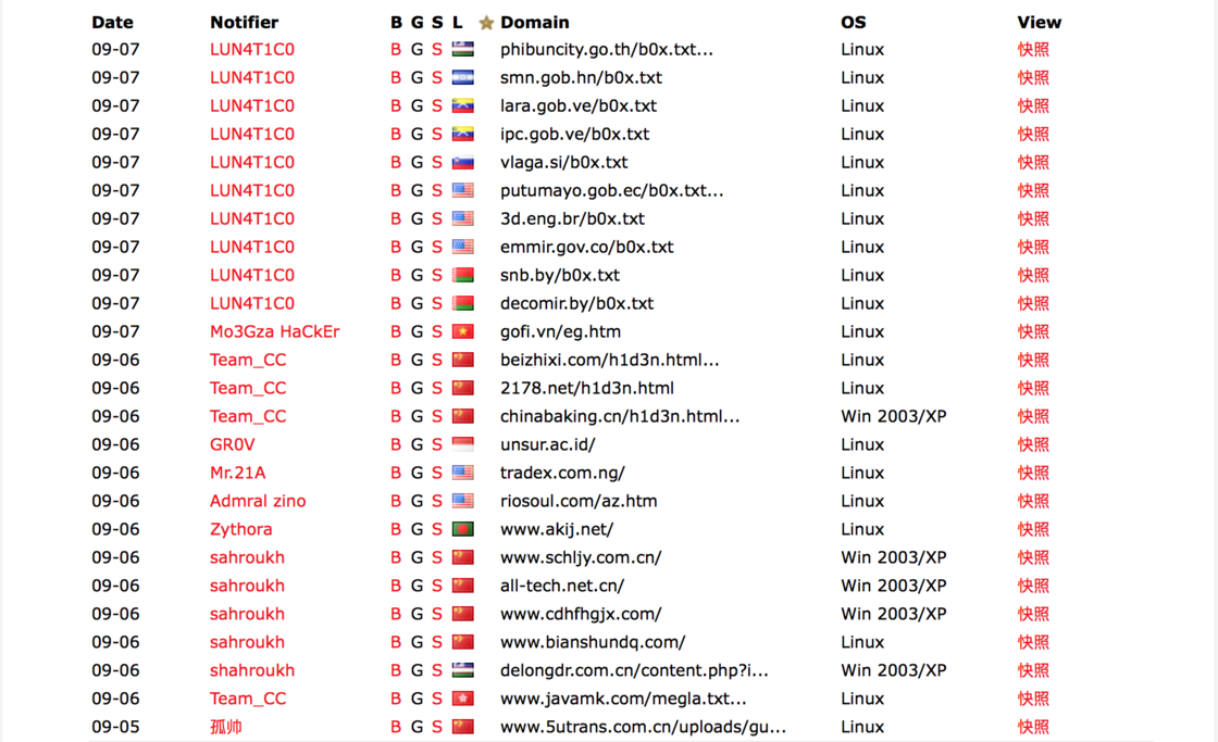 全球被黑站点统计系统 是国内的一个黑客相关信息的网站,这个网站是专门用来统计近期被黑客「光顾」的网站列表,可能你就在这些列表里就找到你经常去的一个「网站」,那你可就要小心了哟。除了列表以外,本网站也是提供了一个统计地图,统计了攻击数量和提交排行,当然这些可能我们都看不懂。没关系,你只用把它添加到你收藏夹就好,等待有一天有人无意打开你的收藏夹,惊叹一句「原来你还懂这个」。