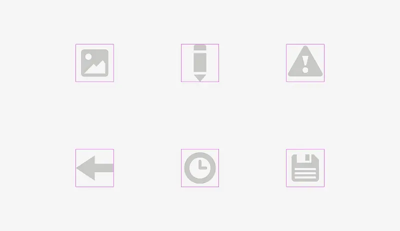 • 图标区域应为视觉平衡保留一定的空间,这一点对保持同系列图标视觉平衡很重要。