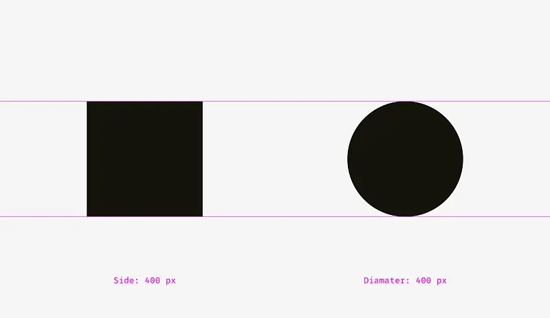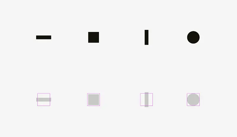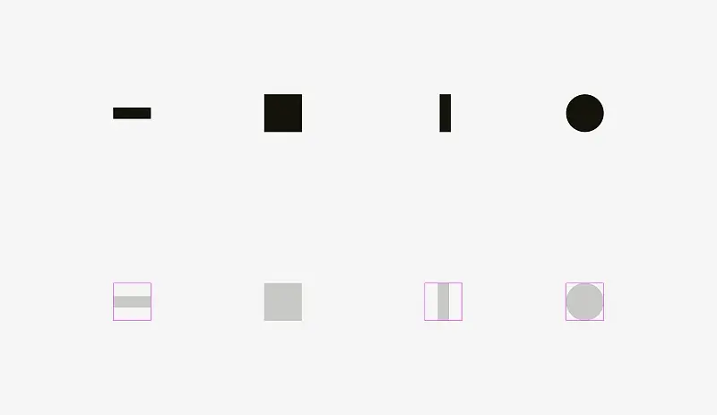 • 圆、菱形、三角形和其他非方形形状为了与方形形状保持一样的视觉大小,应适当放大
