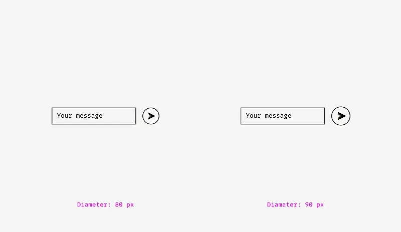 另一个视觉平衡的例子是有圆形按钮的输入框。如果圆形按钮直径等于输入框,人眼看起来就比较小,如果放大一点点,整个结构就变得比较平衡。