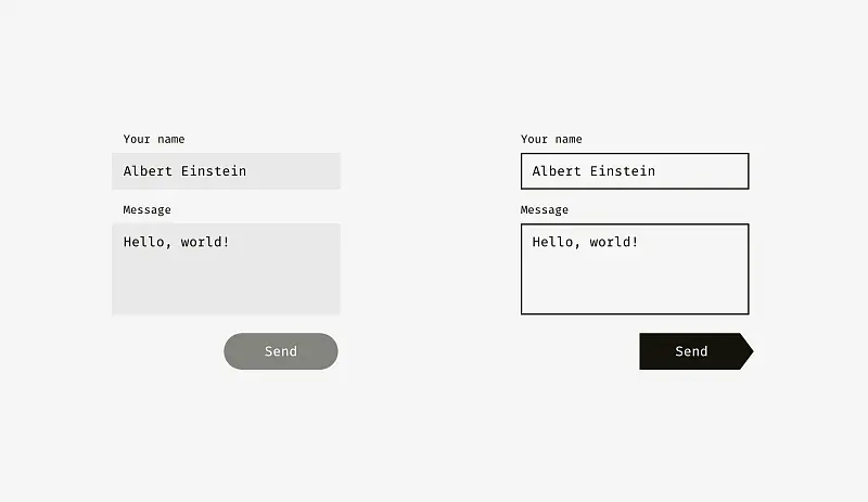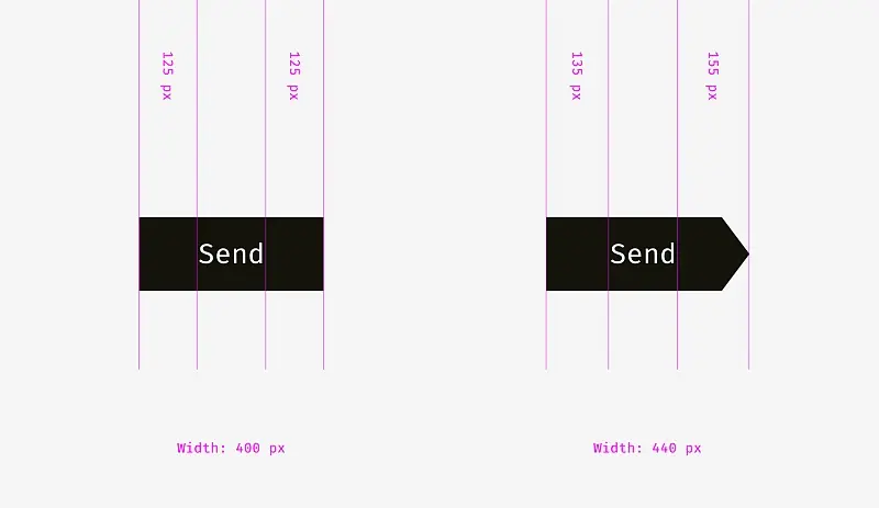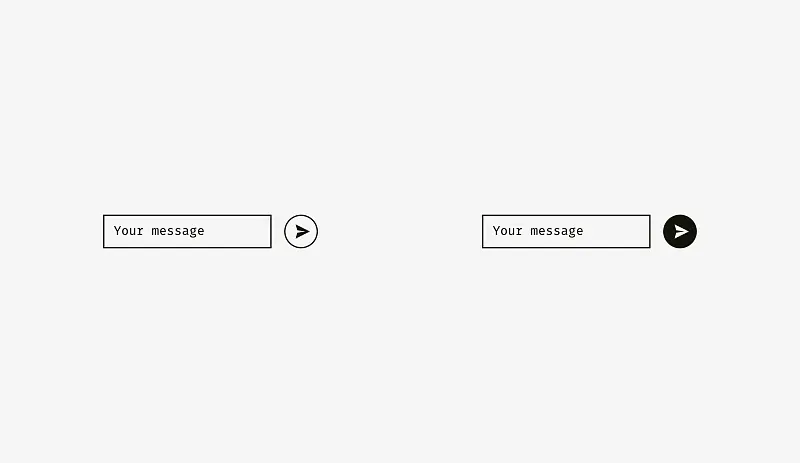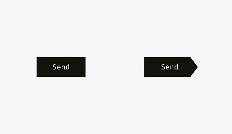 左图具有浅色背景的输入框可以超出输入标签和用户输入内容。 “发送”按钮的右边不必完全对齐输入框背景的右边缘,因为按钮比背景暗,视觉体量重。