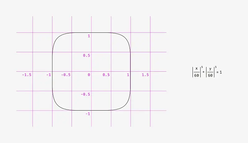 Marc Edwards 提出了Lamé曲线的公式,形成了光滑并且视觉完美的形状。从iOS 7开始,图标便基于此。