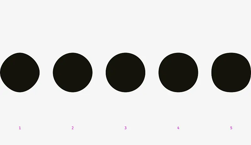 我之前问过的人大都选择3和4.1和2绝对太瘦,5太丰满。如果我们重叠3和4-一个几何圆和一个修改过的圆,会发现第二个比第一个稍微重一点,因此,眼睛觉得更圆润。