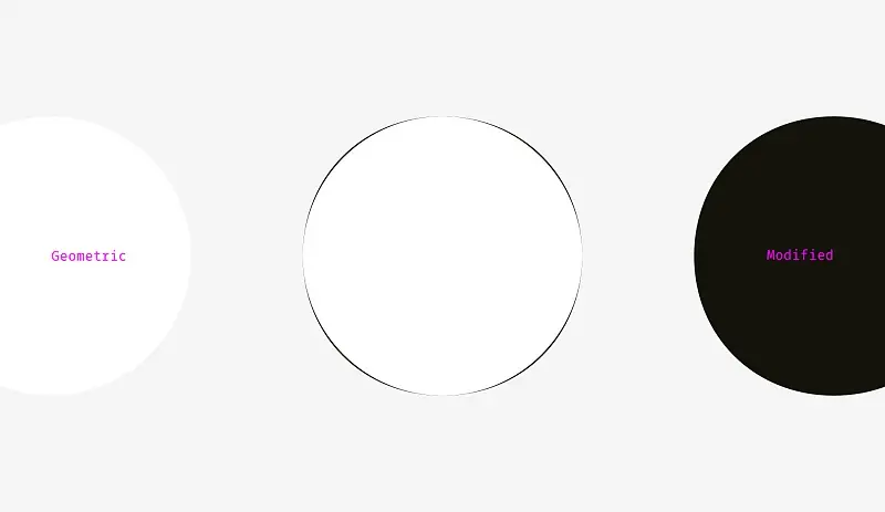 所以,从视觉上来说修改过的圆(右)比几何圆(左)看起来更圆。