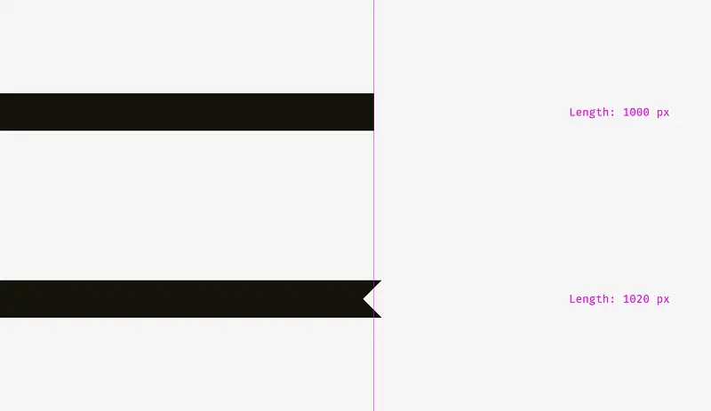 我对下面的长条进行了视觉补偿。使下方长条超过上面长条20px,用来补偿下方长条间隙缺少的视觉体量,从而使两者视觉平衡。