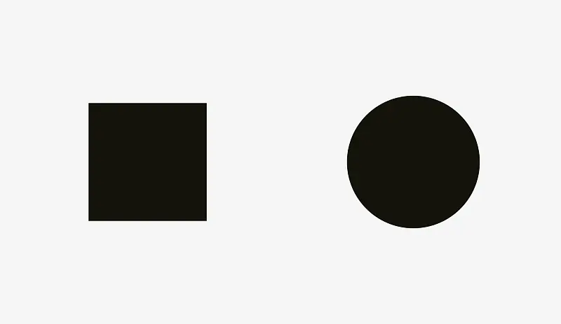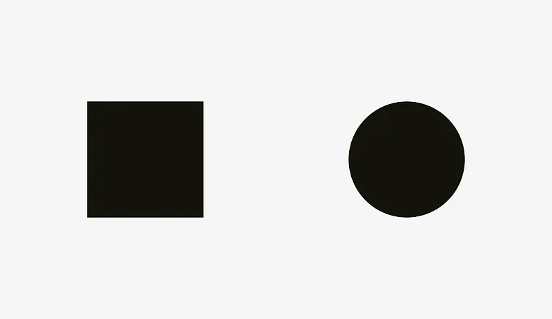我们再看一下下图中的正方形和圆形,你有没有觉得视觉上两者是等量的。