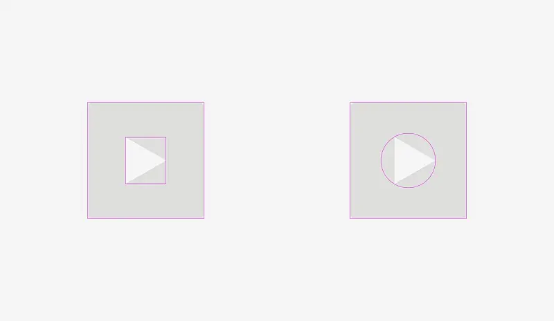 播放按钮也是一样。如果直接对齐圆角矩形和三角形,看起来会很奇怪。