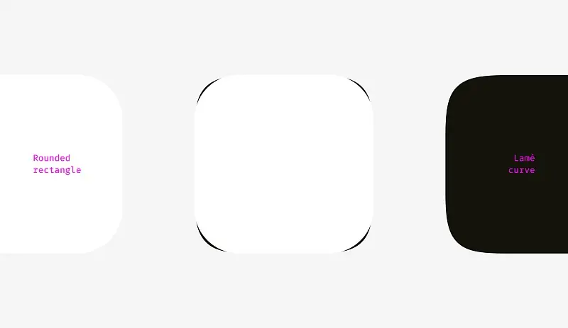 第一个是我用Sketch绘制的圆角矩形。第二种是超椭圆形,也就是著名的Lamé曲线。