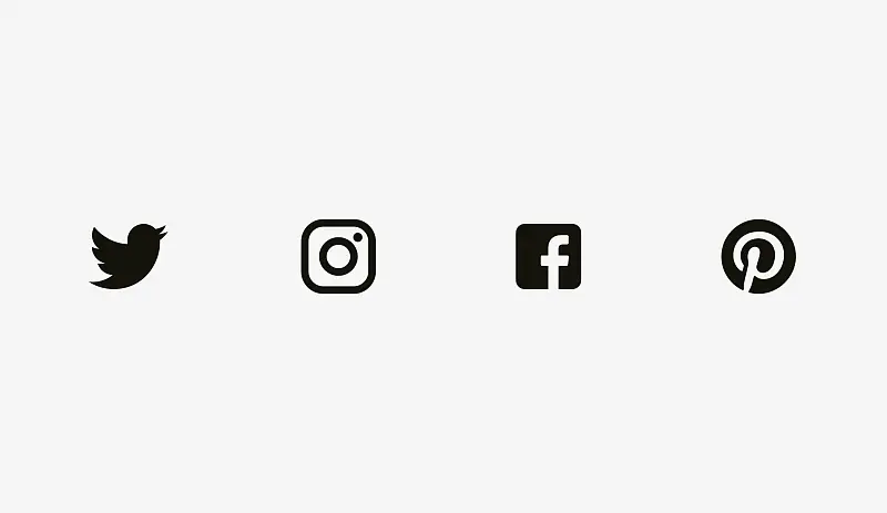 但是有时候我们会用到现存的图形,比如常用于分享和喜欢的社交logo。Facebook 和 Instagram 是方形,但是Twitter是一只鸟的剪影而Pinterest是由圆形包围的“P”。所以Twitter和Pinterest图标大一点点,是为了看起来与Facebook和Ins的图标视觉平衡。