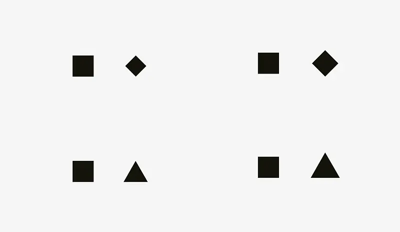 菱形和三角形有同样的视觉效果。为了和方形有同样的视觉效果,他们应该更宽更高,面积上看起来才相同。越简单的图形越能在面积上更接近(图形越复杂越难以控制面积等量)。