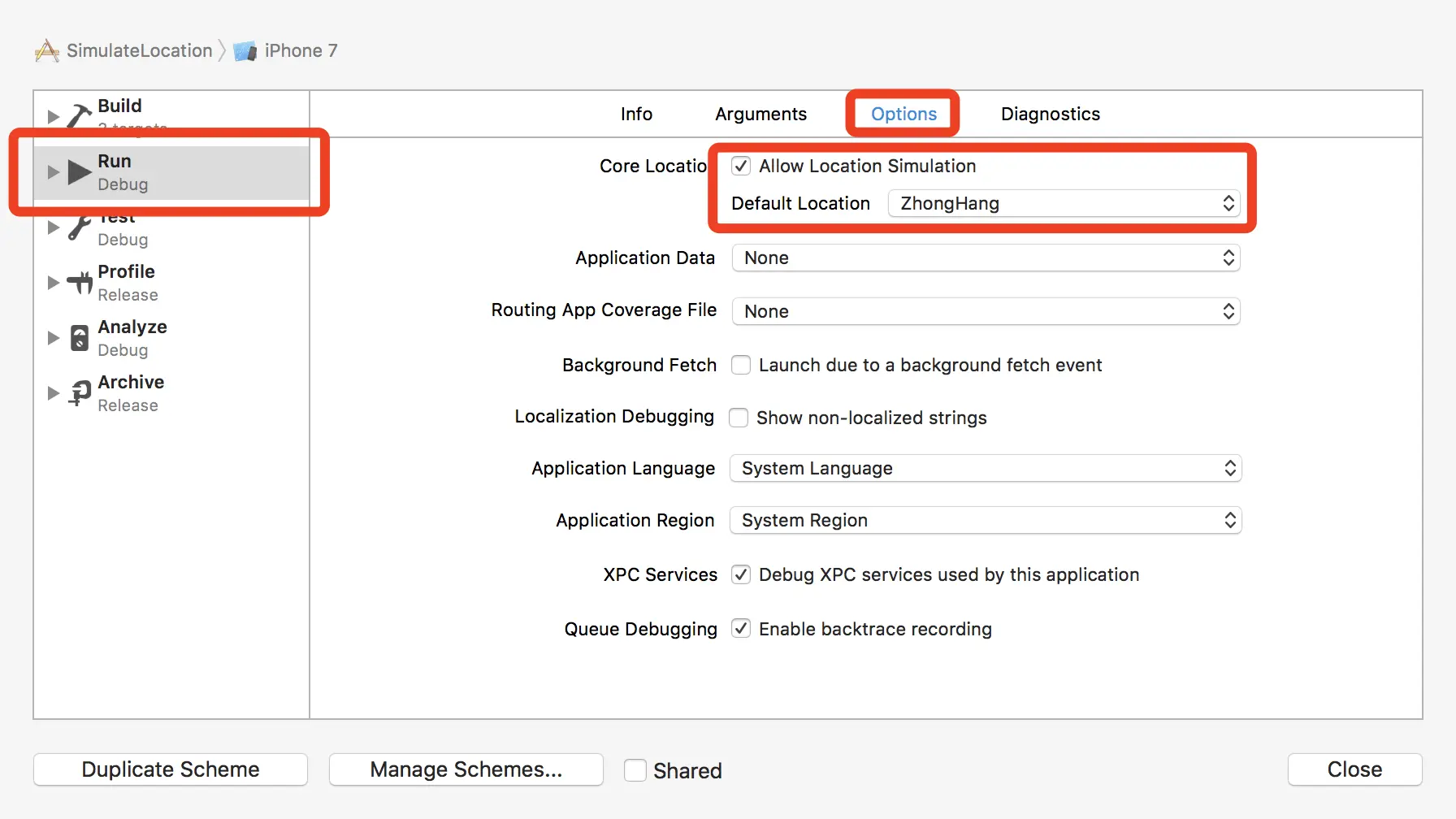 真机运行一个新建的空的iOS项目,把上面我们新建的gpx文件拖到工程里,配置一下Scheme,然后真机运行即可。