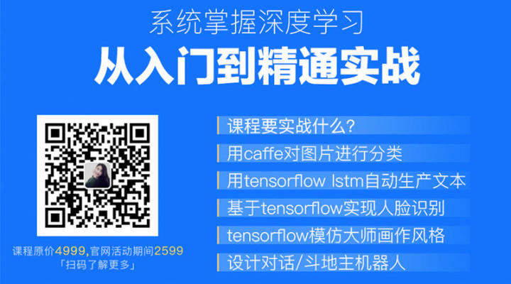 我们邀请到资深大数据专家高扬和高级软件架构师卫峥两位老师开讲「深度学习,从入门到精通实战」课程,同学们将通过最浅显易懂的方式入门进阶深度学习。想了解更多,请扫海报二维码,点击阅读原文直接进入「课程链接」。