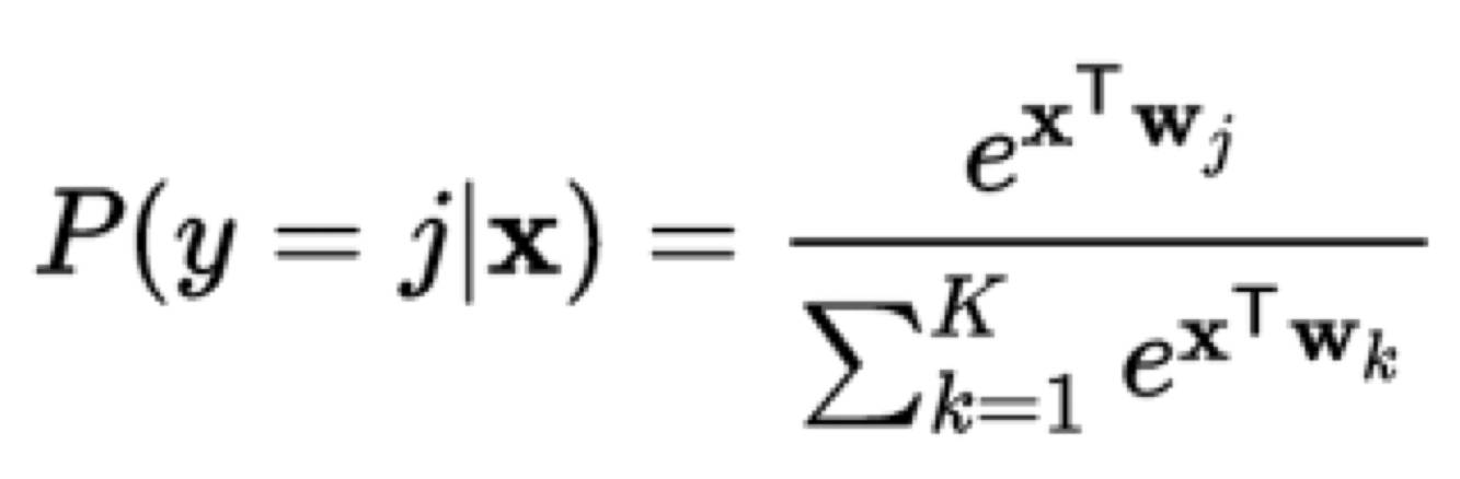 先等等,还记得深度学习中经常加在神经网络的顶层来求后验概率P(y=j|X)的softmax函数吗?对就是下面这个熟悉的函数: