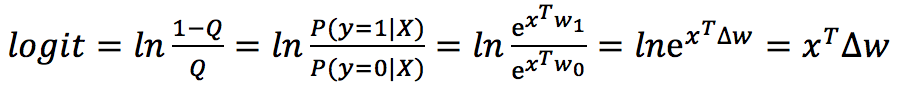 其实为某种形式的回归建立数学模型并不是一件容易的事情,经过先烈的曲折探索,得出了一个神奇的公式,称为logit公式: