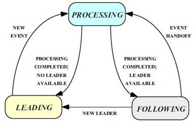 在Leader/Follower模式中,不存在一个专门用来监听的线程,所有的线程都是等价的,而这些线程会不断在Leader、Follower和Processor这三个状态之间来回切换。