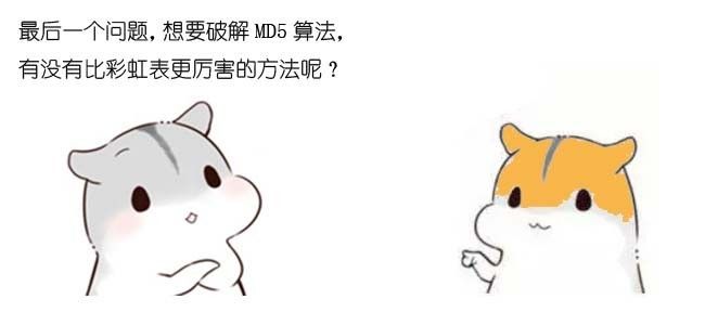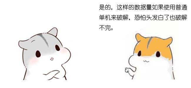 对于单机来说,暴力枚举法的时间成本很高,字典法的空间成本很高。但是利用分布式计算和分布式存储,仍然可以有效破解MD5算法。因此这两种方法同样被黑客们广泛使用。