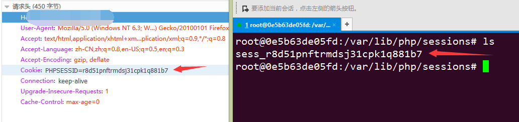 session的文件名格式为sess_[phpsessid]。而phpsessid在发送的请求的cookie字段中可以看到。