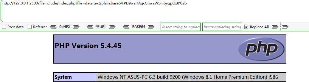 加号+的url编码为%2b,PD9waHAgcGhwaW5mbygpOz8+的base64解码为:<?php phpinfo();?>