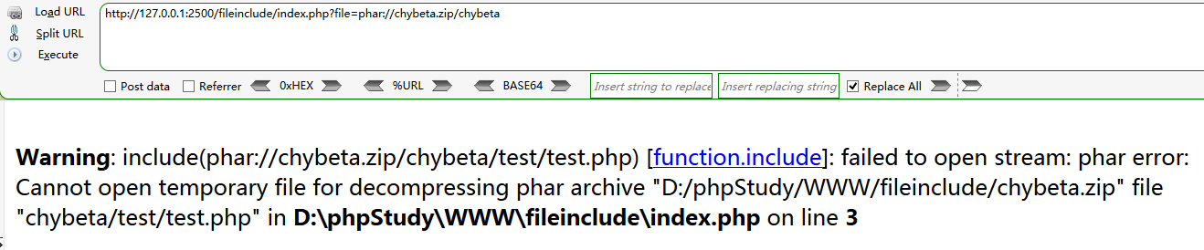 则拼接后为:zip://D:\phpStudy\WWW\fileinclude\chybeta.zip#chybeta/test/test.php