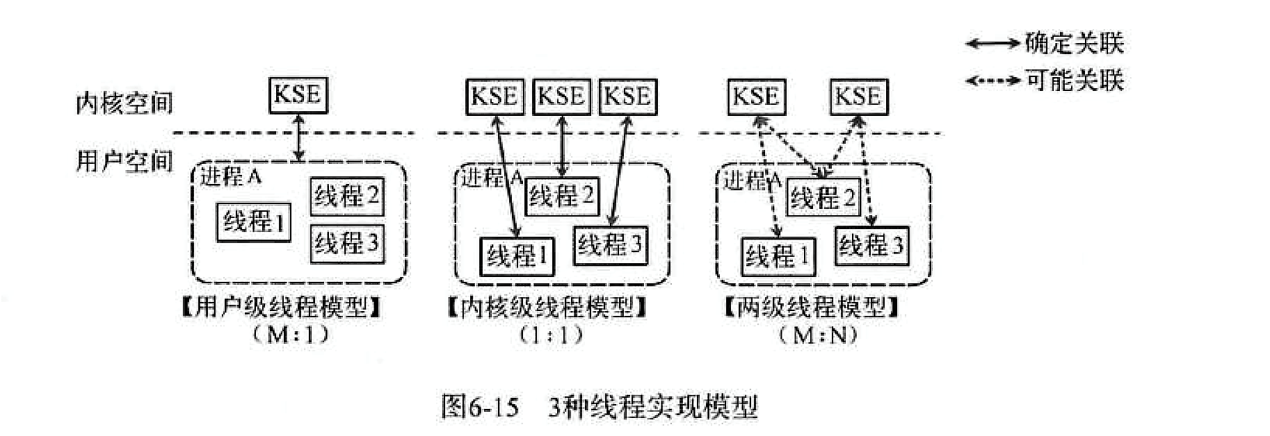 线程的实现模型主要有3种:内核级线程模型、用户级线程模型和混合型线程模型。它们之间最大的区别在于线程与内核调度实体KSE(Kernel Scheduling Entity)之间的对应关系上。所谓的内核调度实体KSE 就是指可以被操作系统内核调度器调度的对象实体,有些地方也称其为内核级线程,是操作系统内核的最小调度单元。