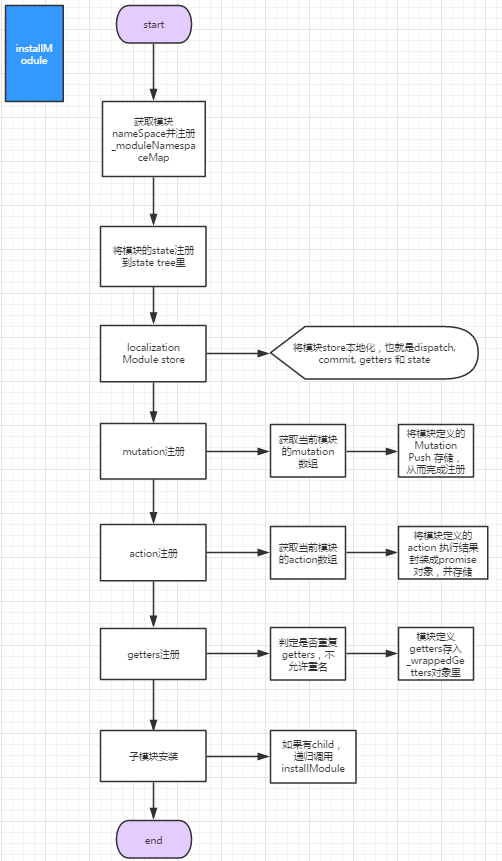 installModule只是完成了模块的注册工作,离我们可以使用这些状态还有一些需要处理的代码。