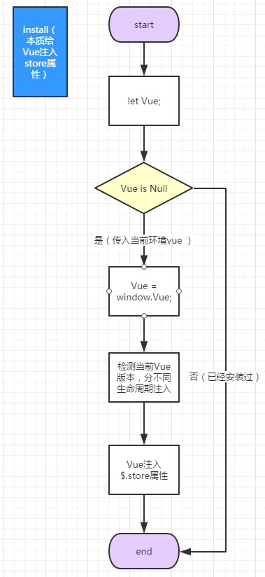store像是一个生态环境,整个应用里的每个组件都要在这个环境里注册,完成状态的可预测管理。注册之前需要进行环境检测,这像是进入这个生态环境注册的门票,或者说是通行证;达到注册标准之后,进行一些内部属性和方法的初始化工作,这像是为注册工作搭建一个“舞台”,接下来的注册工作都在这个“舞台”上完成。
