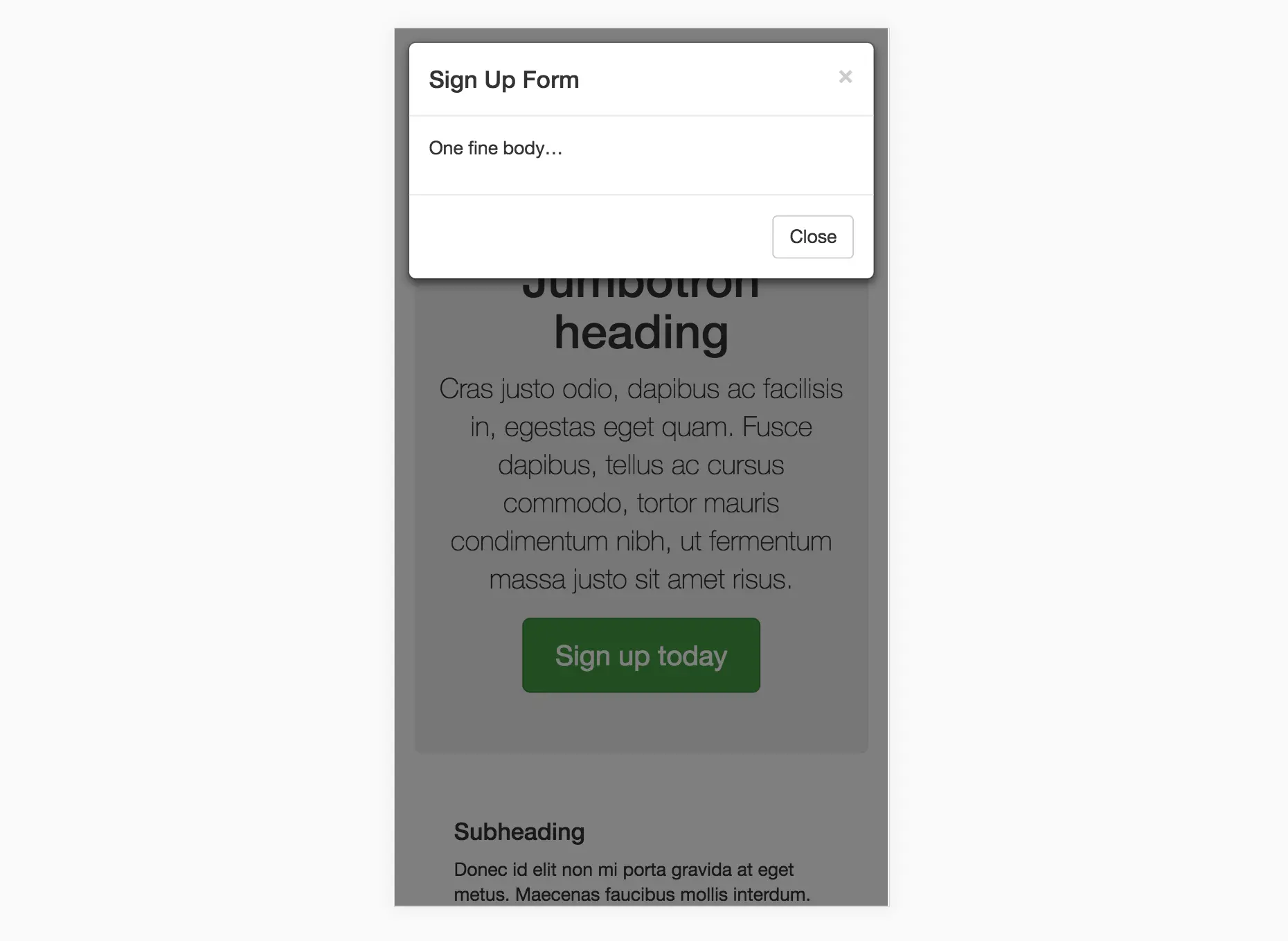 点击Sign Up today按钮会弹出一个模态框, 模态框弹出时的样式如下: