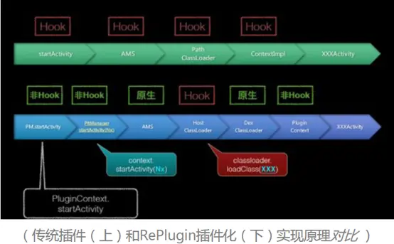 只hook了一处系统API提升了RePlugin的稳定性,同时“坑位”概念解决了以往插件化框架需要在宿主APP内预先给插件组件“埋点”的弊端,此外插件还能脱离宿主独立安装、运行,不得不说360 Replugin是对android插件化技术的一次革命。