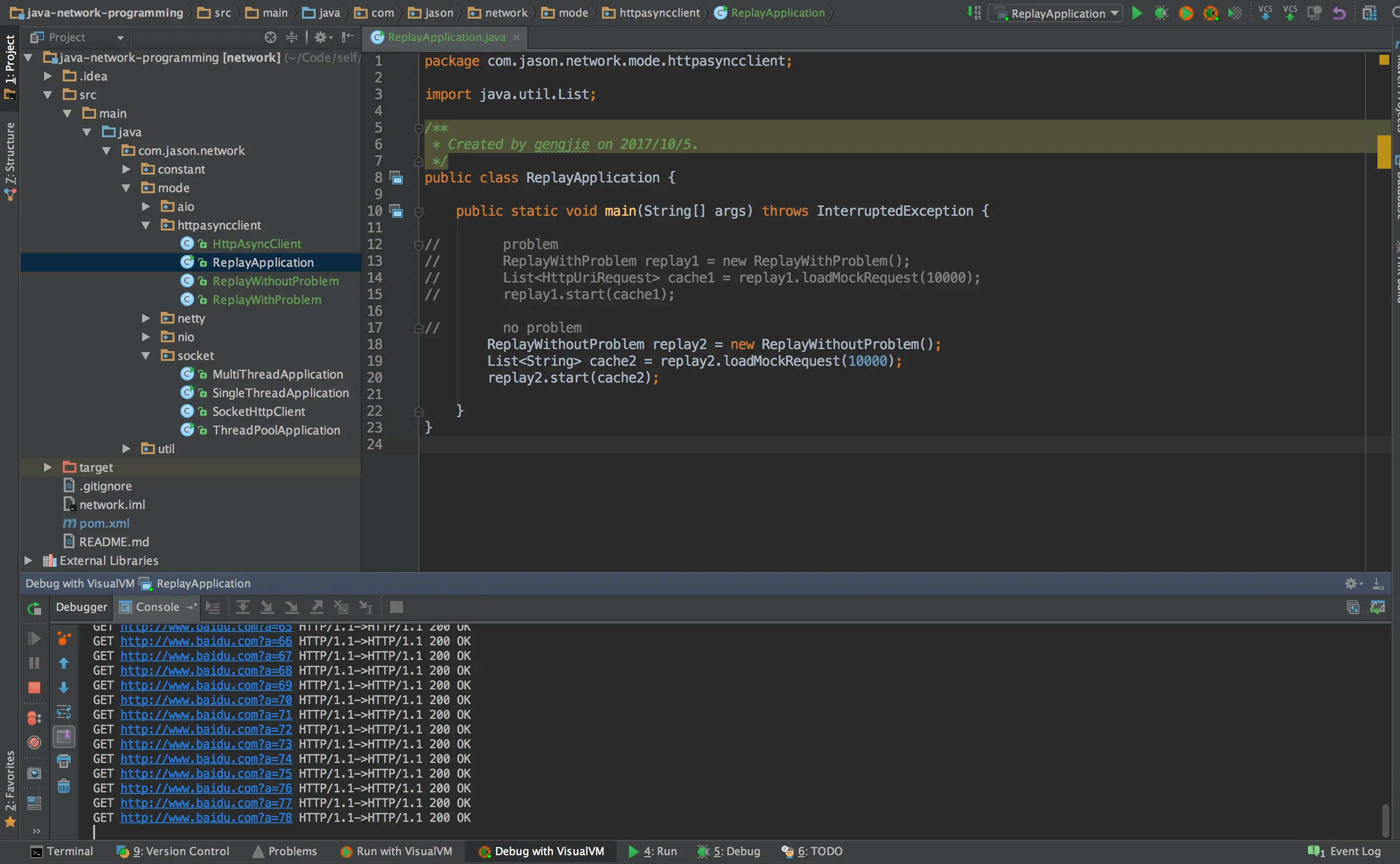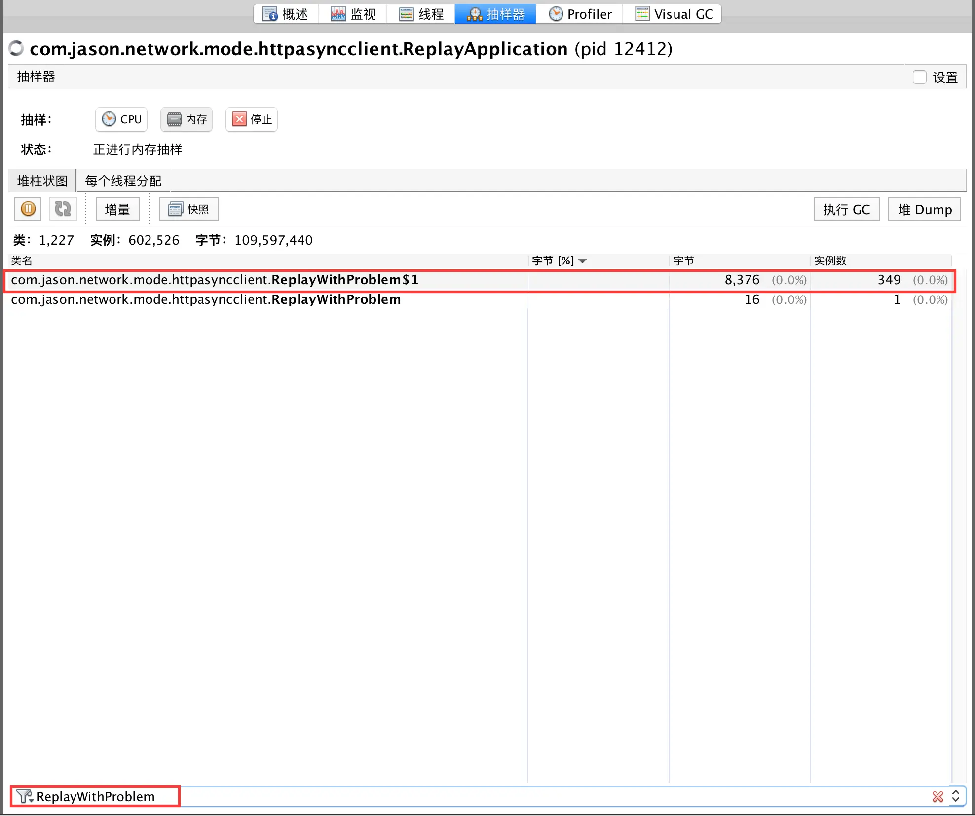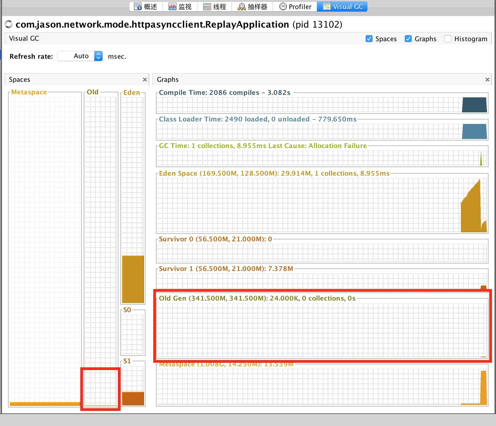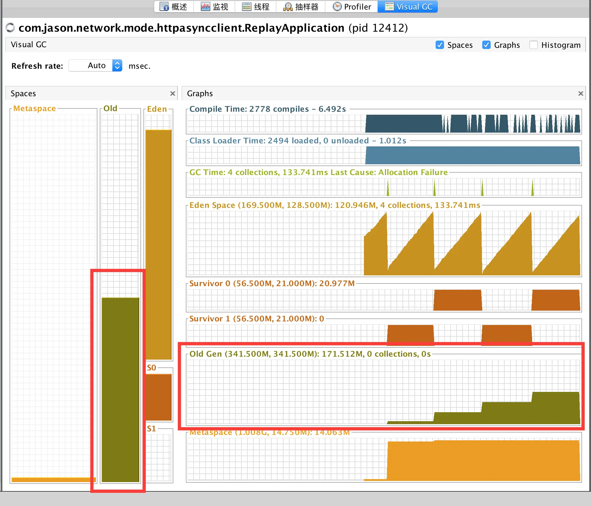 启动 ReplayApplication 应用(IDEA 中安装 VisualVM Launcher后,可以直接启动visualvm),通过 visualVM 进行观察。