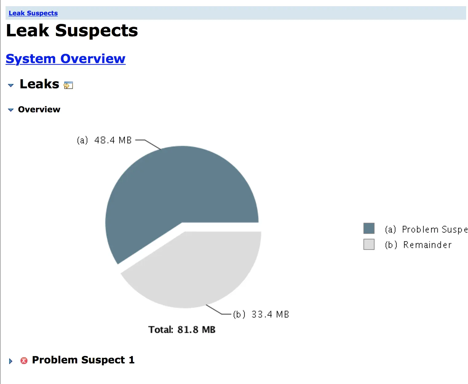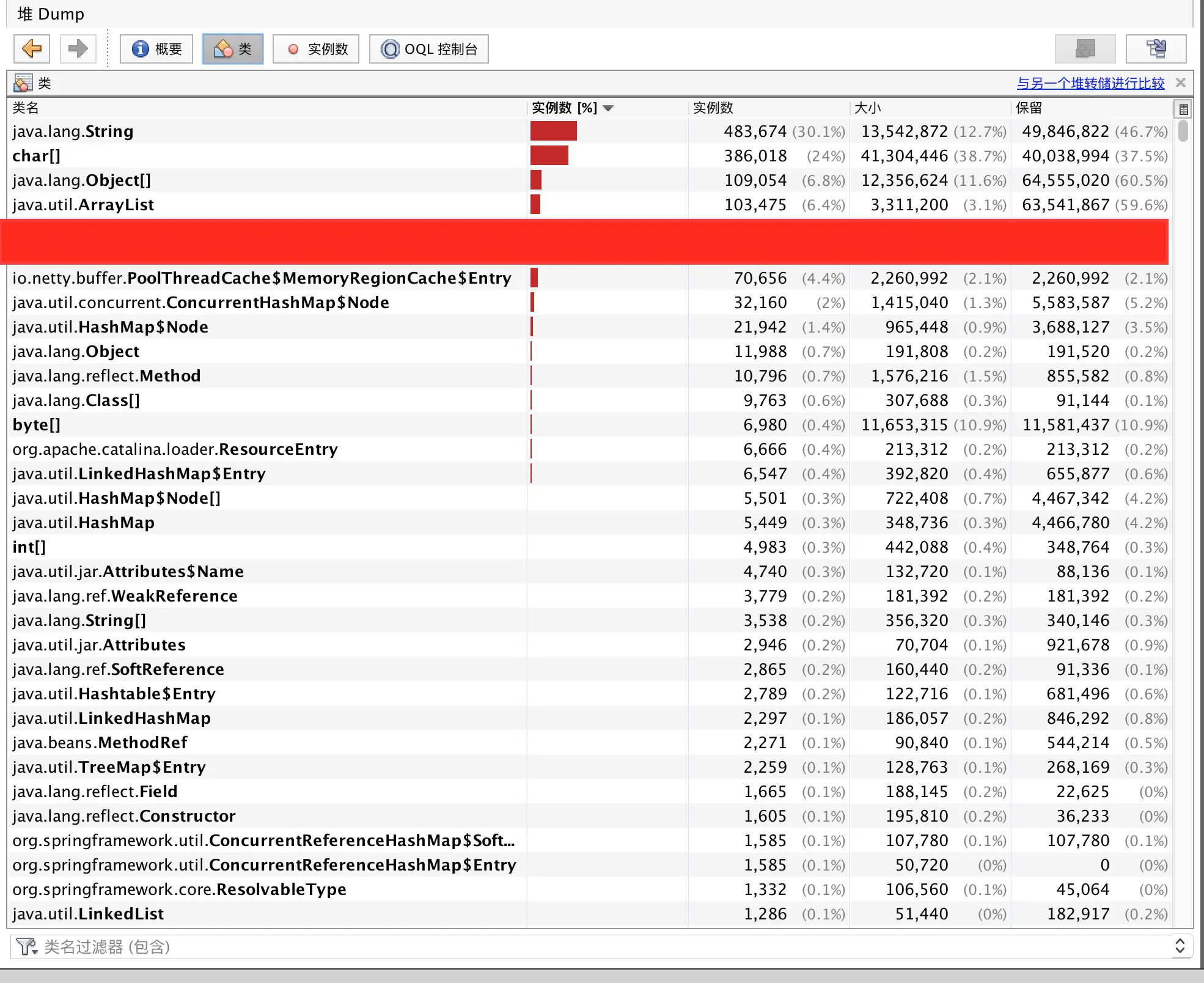 当然,mat 也是非常好用的工具,它能帮我们快速的定位到内存泄露的地方,便于我们排查。 展示如下: