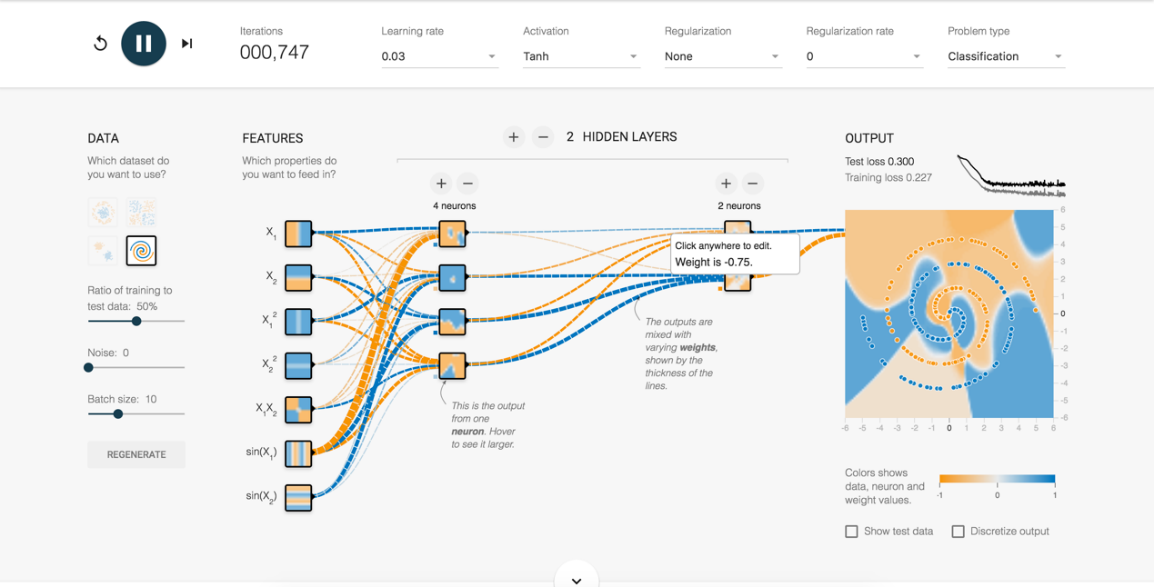 图2.2 Google Tensorflow官网的神经网络演示示意图