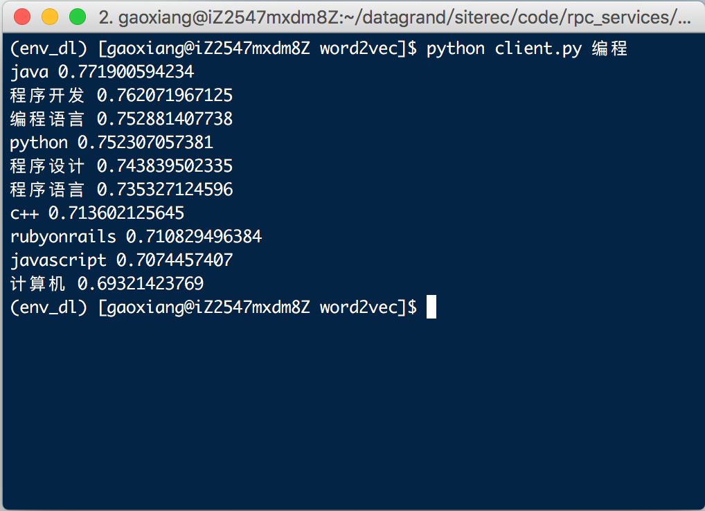 图2.3 基于微信数据制作的word2vec模型测试:编程