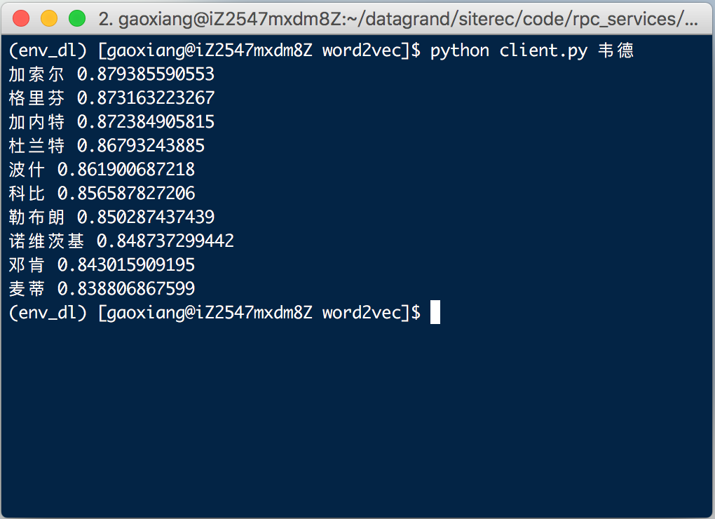图2.4 基于微信数据制作的word2vec模型测试:韦德