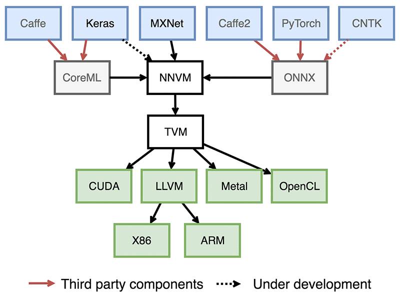 MXNet直接将其计算图转换为NNVM图得到支持,Keras也以类似的方式得到支持,不过正在开发中。NNVM编译器也可以采用模型格式,如CoreML。因此,凡是能够使用这些格式框架都可以使用此编译堆栈。