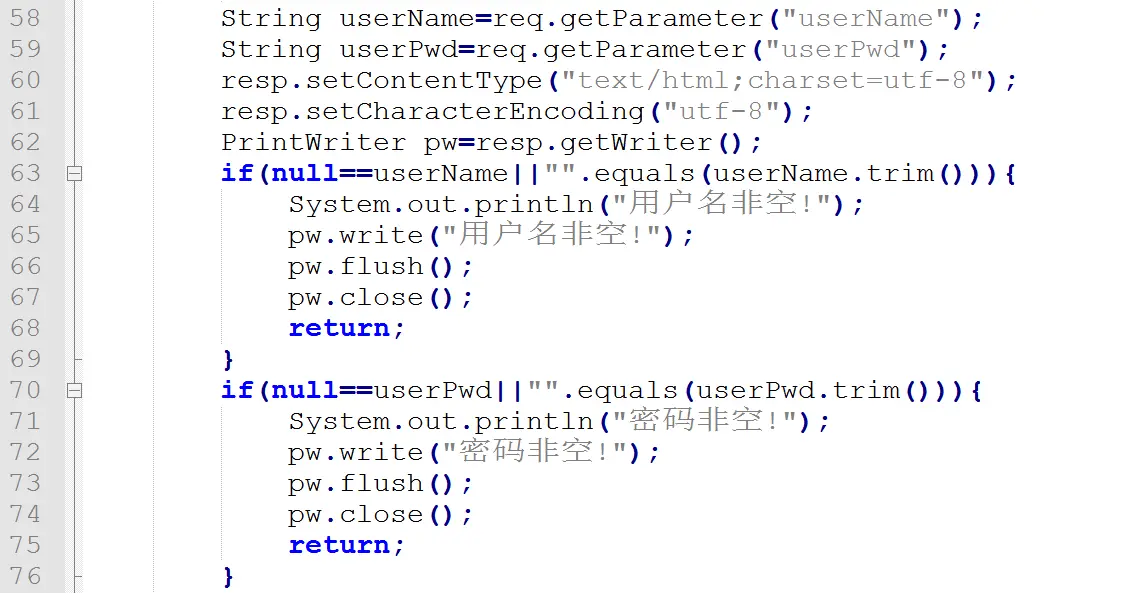 以上代码实际上已经实现了一个简单的用户登录功能,但是跟我们平时所写的代码还是有较大差距的,具体差距在哪呢。
