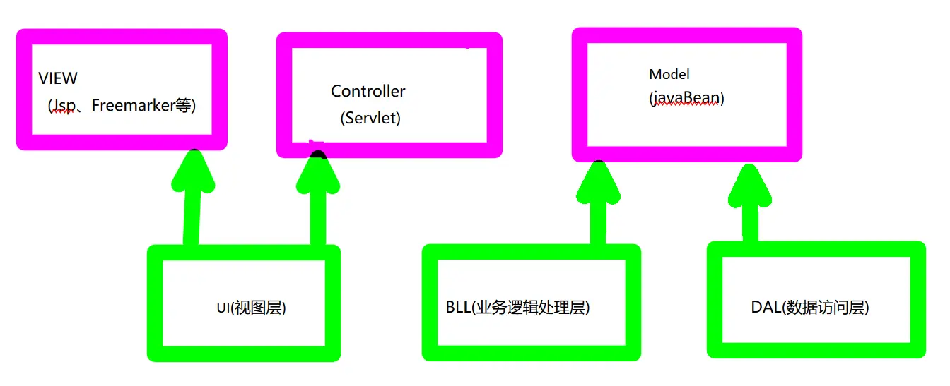 Ui(User Interface layer) 界面层 即 我们这里用到的jsp+servlet