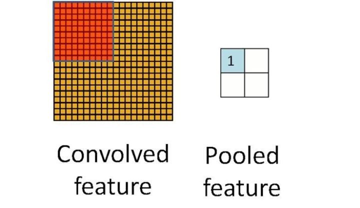 图14描述了池化层是如何工作的。池化层通过把图像分割成很多小区域,然后取小区域的特征来把一个图像缩减成比较小的图像。图中描述了最大池化(Max-Pool)的一个过程,也就是特征的提取是基于小区域的最大值。可以看到这个池化层把原来的4x4图缩减成了2x2的图,减少了特征的维数。池化层的作用主要是简化模型和提取特征。