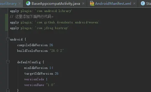 把上方的YOUR_BINTRAY_USERNAME和YOUR_BINTRAY_API_KEY替换成你自己的。
