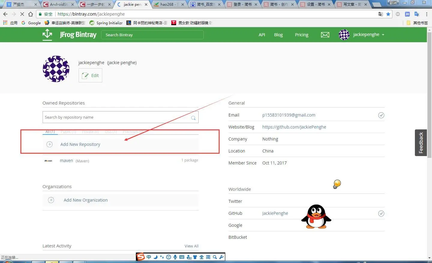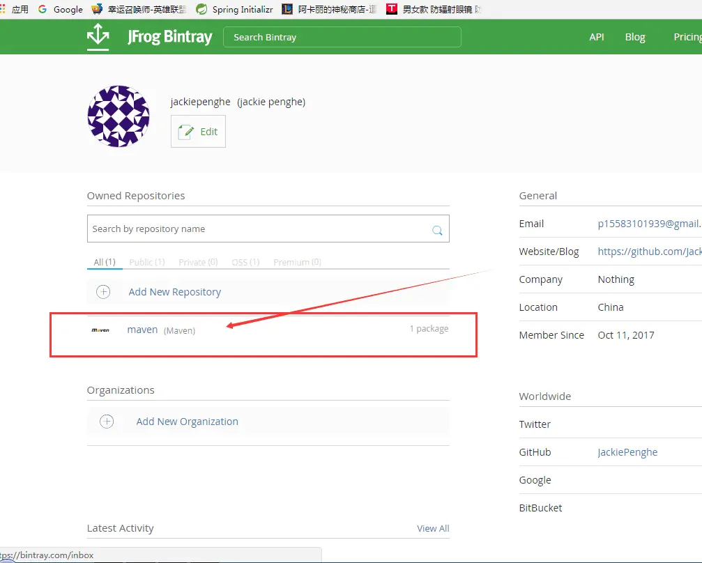 当成功执行完上述命令之后,登陆bintray.com/,你会发现maven中多了一个项目了。