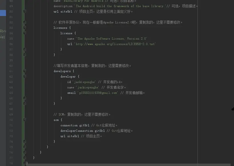 记住要把user和key换成自己的,同样要显示BUILD SUCCESSFUL才可以。