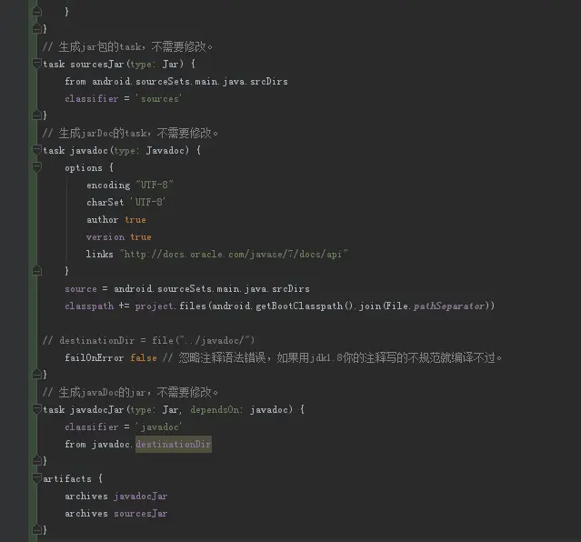 task javadocJar(type: Jar,dependsOn: javadoc) {