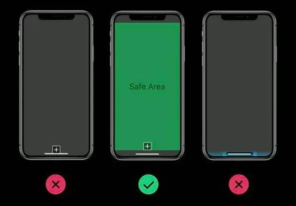 「安全区」顾名思义,就是一块你可以把重要元素放在里面,而不用担心由于屏幕异形导致交互问题的区域。
