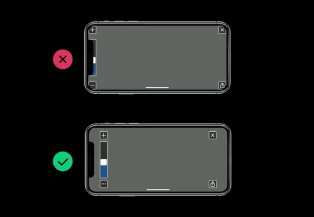 另外值得注意的是,不建议在屏幕底部放置太多交互式控件。Home Indicator 周围的间距纯粹是为手势触碰创建的,将按钮放在指示条附近,用户很可能意外的触碰到指示条,或是在使用指示条时误触 App 按钮,造成操作干扰。