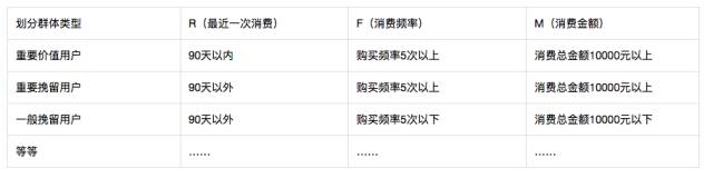 这就是RFM模型,曾经在传统行业被频繁应用,而在以消费为主的运营体系中能够移植过来为我们所用,它既是CRM系统的核心,而是消费型用户分群的核心。