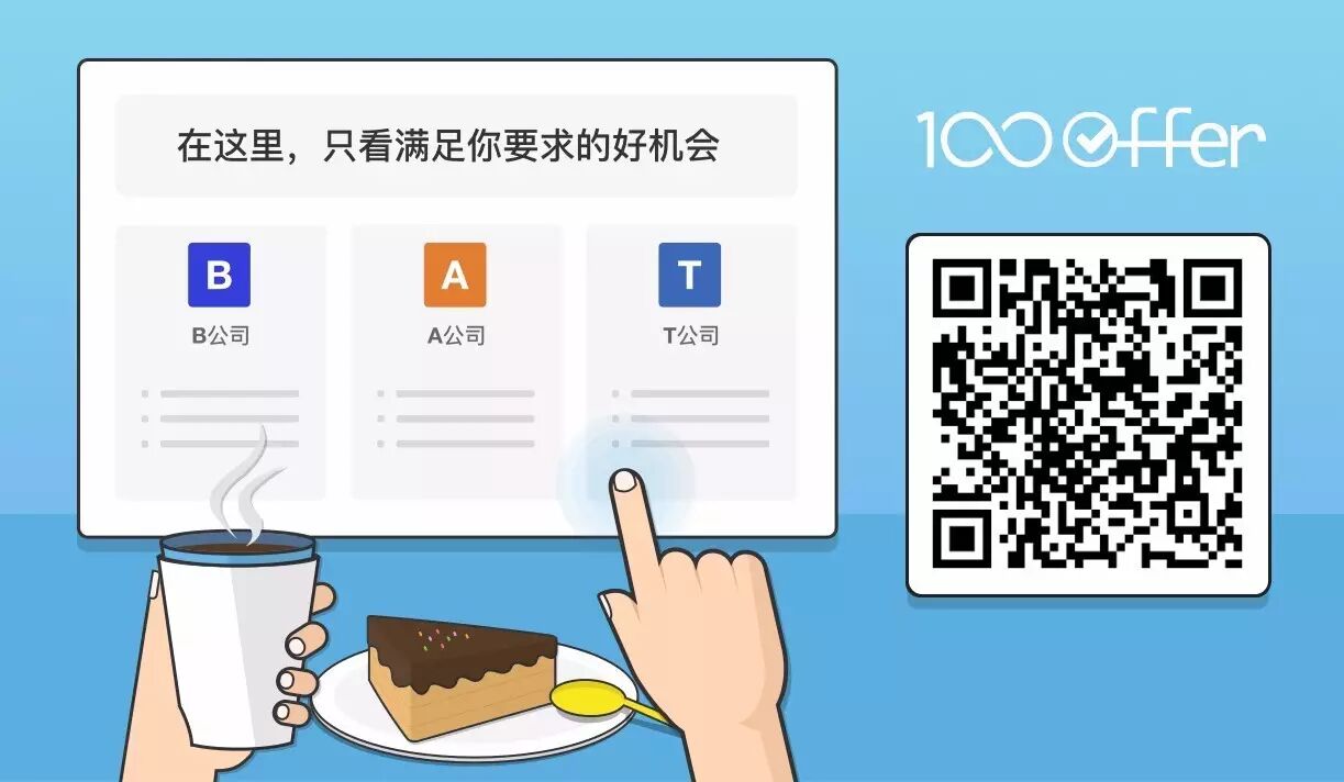 100offer 会对平台上的人才和企业进行严格筛选,让「最好的人才」和「最好的公司」相遇。