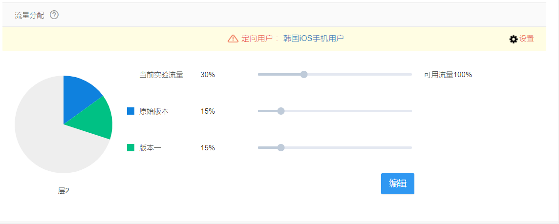 首先基于SDK自动采集来使用聚类分析分割用户群,确保各个维度的群体特征相似,例如不同用户群的机型比例、语言比例等都会相似,以免干扰试验结果可信度。而在“让客户随心所欲区分用户群”这一点上,则在兼顾灵活性的基础上做到了精确定向。通过允许客户添加各类用户标签,Testin A/B测试可以依此实现精准定向分流,客户只要设置相应的用户标签(例如性别、年龄等,需要上传),就可以在分配流量(分流)的时候自动完成用户群分割,简单高效。