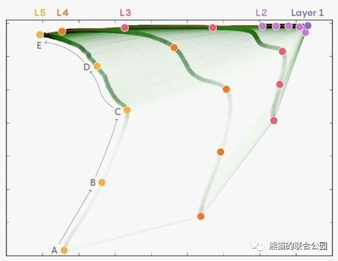 根据这个原理,提徐碧和斯瓦梓在他们的实验中跟踪了每个层面的数据节点数据的输入和输出。这样,就可以观察到数据神经网络形成逻辑和抽象能力的过程。他们随后发现,在层和层之间数据的变化符合瓶颈理论的假设。(这个假设的具体内容可以通过在个大付费的学术电子图书馆上搜索“Tishby, Pereira, Bialek”来获得)其中最为关键的一点是,数据节点层之间对于非核心信息的压缩率和提徐碧早年提出的数据瓶颈最高压缩率吻合。 此外提徐碧和斯瓦梓还有另外一个有趣的发现,即深度学习分为两个阶段:一是简短的“拟合”期。在此期间,数据神经网络的主要行为是将训练数据分类和打标。第二个阶段则非常漫长,其主要的行为是将数据进行压缩,而这个阶段也正是数据神经网络获取逻辑能力和抽象能力的时期 。